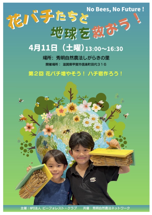 - ・セミナー「ハチは敵か、友達か?—無知と誤解が自然を壊す。花バチとハチの道の必要性」 60分